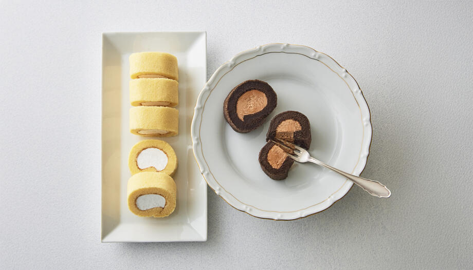ほんのりビターなココア入りスフレ生地でガナッシュクリームを巻き込んだミニロールケーキです。